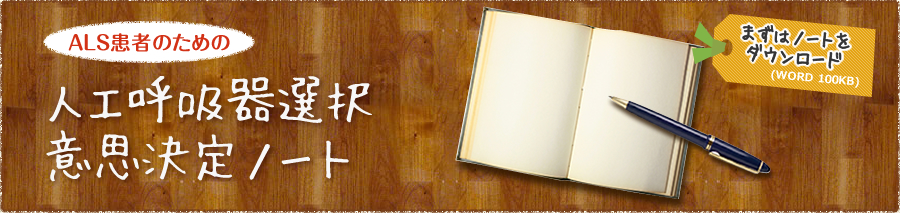 人工呼吸器選択 意思決定ノートは、平成23年度厚生労働科学研究費補助金(難治性疾患克服研究事業「希少性難治性疾患患者に関する医療の向上及び患者支援のあり方に関する研究」研究代表 西沢正豊)により制作しました。
