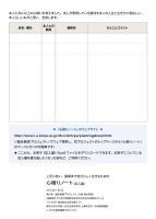 本人と共に以上の心積りを考えました。本人が表明している意向を本人の人生と生き方に相応しい、本人らしいものと思い、支持します。氏名・署名本人との 関係連絡先ひとことコメント◦ 「心積りノート」のウェブサイト ◦http://www.l.u-tokyo.ac.jp/dls/cleth/pa/planningahead.html(「臨床倫理プロジェクト」でウェブ検索し、同プロジェクトのトップページから「心積りノート」のページに行くのが簡単です)◦ここから、本冊子《記入編》のpdfファイルをダウンロードできます。本冊子についている記入編を書き直したくなった時など、ご利用ください。上手に老い、最期まで自分らしく生きるための心積りノート[記入編]2015年11月1日発行者 臨床倫理プロジェクト(代表 清水哲郎)《高齢者ケアにおける意思決定を支える文化の創成》チーム113-0033 東京都文京区本郷7-3-1東京大学大学院人文社会系研究科 上廣死生学・応用倫理講座© 2015 臨床倫理プロジェクト